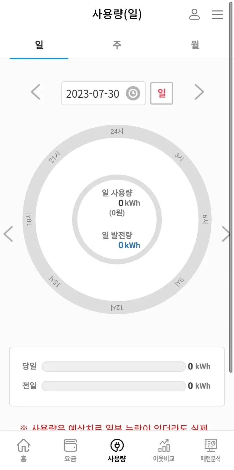 ① 한전 파워플래너는 서버에 오류가 발생하거나 전기계량기가 오작동했을 경우 등 측정치가 정확하지 않을 수 있습니다.