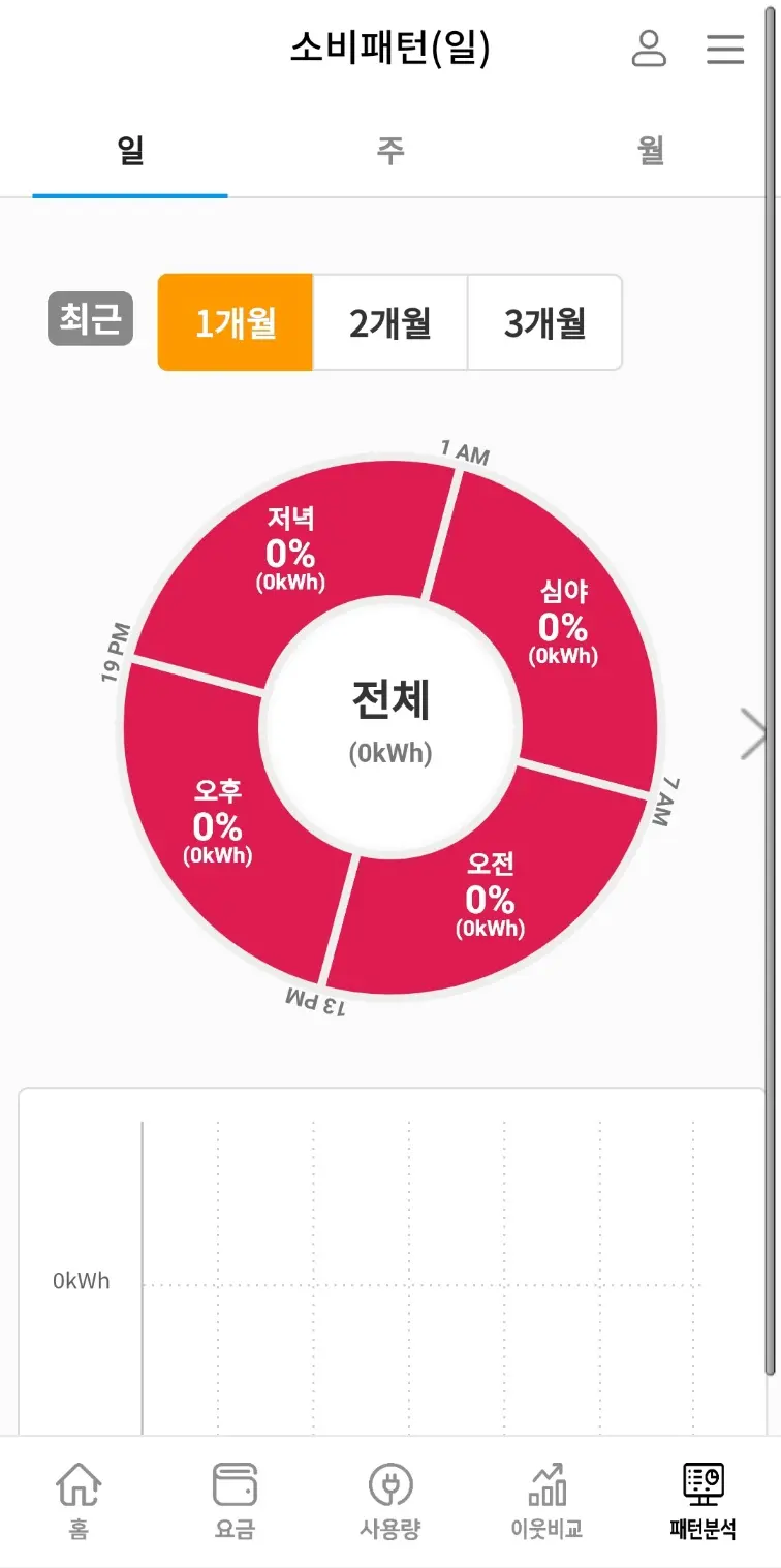④ 한전 파워플래너 소비패턴 메뉴에서는 일/주/월간 단위로 전기를 얼마나 사용하고 있는지 패턴을 확인할 수 있습니다.