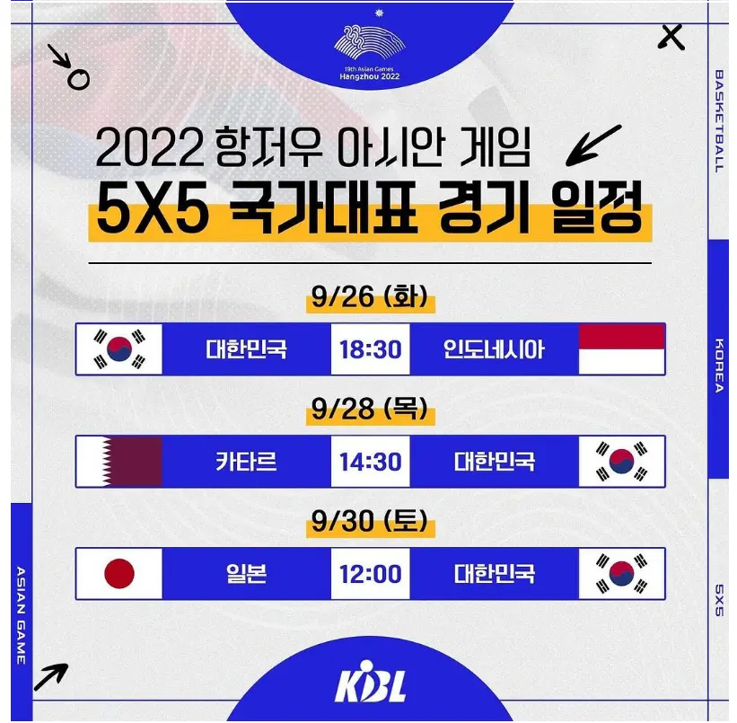 이번 포스팅에서는 제19회 항저우 아시안 게임 남녀 농구 국가대표팀의 일정, 조편성, 선수 명단, 중계방송 시청 방법 등에 대해 알아보도록 하겠습니다.